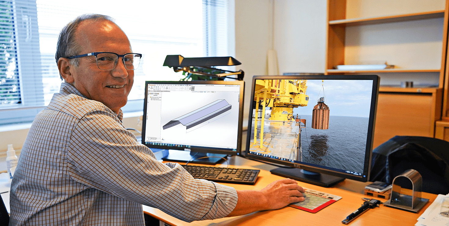 Forsknings- och utvecklingschefen Arne Kryger berättar om Ib Andresen Industris bidrag: ”Med vår kunskap om stål har vi varit med och reducerat materialtjockleken markant, vilket har minskat vikten på sugfundamentet från 140 ton till endast 100 ton”.